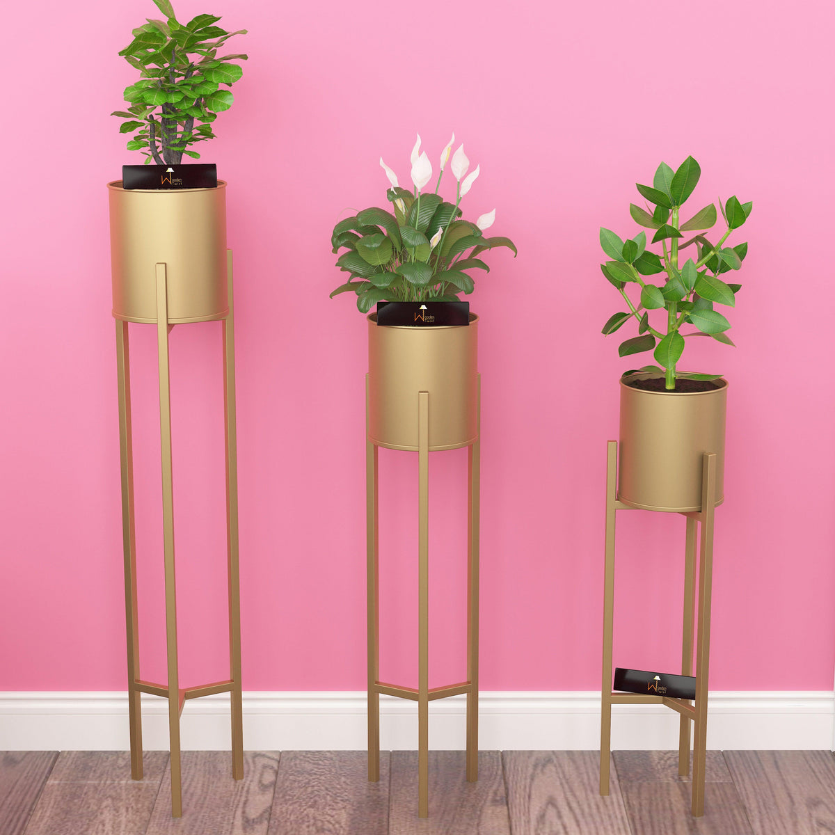 Buy Metal Plant Stand Rack For Indoor Outdoor Golden Set Of 3 Online At Woodentwist Woodentwist